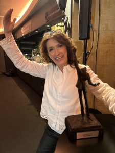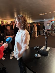 Hun inntar som oftest scenen med sine helt presise rolletolkninger og skarpe replikker servert på sjarmerende bergens-dialekt. I dag ble hun målløs da hun som egentlig skulle på et lunsjmøte endte på Chat Noir. Fullstendig overrumplet og faktisk målløs et lite øyeblikk, fikk hun prisen av Tom Sterri. Tilstede var Marit sine kollegaer, venner og familie. Og NRK Dagsrevyen.