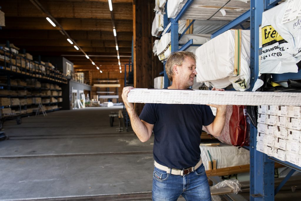 Over veien ligger Trehus Element, et selskap som Eggedal Sag eier sammen med Blinkhus Sigdal. Vi treffer på avtroppende daglig leder, Tor Steinar Fossen. – Det der er ei hytte, sier han entusiastisk og peker på en pent pakket stabel med vegger, klart til henting. Herfra går det ut nesten et elementhus i uka. Det kan være hus, hytter, låver eller garasjer. Kundene er over hele landet. – Det er nesten ingen som skal ha ferdighus fra katalog lenger. Her blir hvert eneste bygg tegnet og tilpasset. Noen skal bygges fra scratch, andre ganger er det snakk om påbygg.