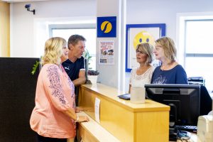 – Vi har mange kundemøter, både med unge og gamle, og tilbakemeldingene er at de setter stor pris på at det fremdeles er mulig å møte oss ansikt til ansikt når det dukker opp spørsmål og utfordringer. Mange kommer hit med litt høye skuldre. Da er vår oppgave å ufarliggjøre møtet, ta en god samtale og finne løsninger, sier Trine.