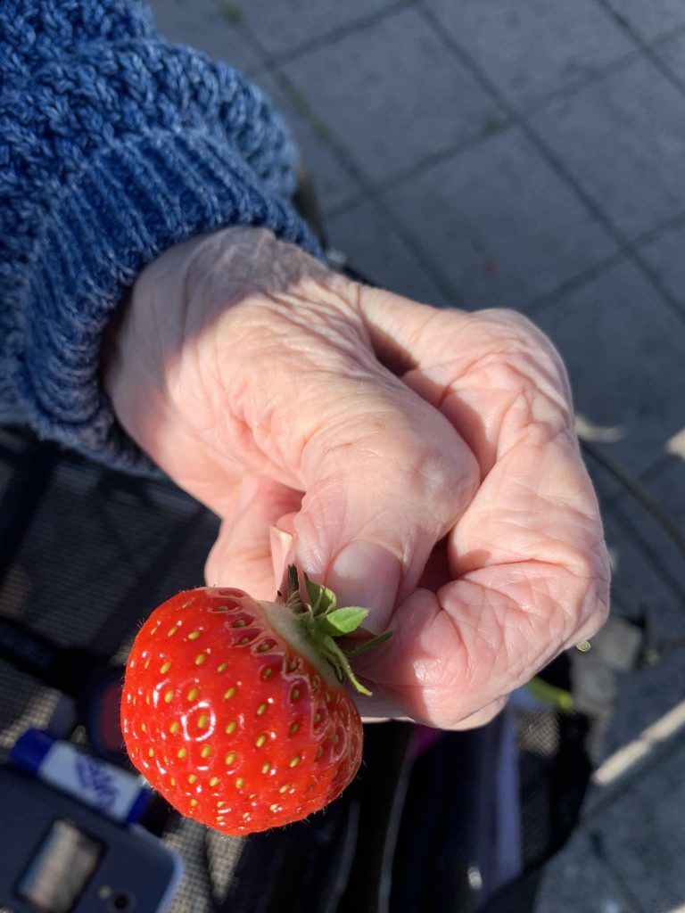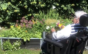 I Hagen finner beboerne ro og noe pent å hvile øynene på. Her trekkes gamle ferdigheter og gode minner frem, og gleden er stor over å kunne plukke blomster, sette sammen buketter og pynte opp for andre inne.