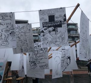 Anne og Thomas i Drammen Røde Kors hadde vakt under Kulturytring Drammen i juni 2023. Arrangementet gikk rolig for seg, og de fikk kontakt med illustratør og drammenser Mads Johan Øgaard i «In seach of Democracy 3.0» i regi Østfold Internasjonale Teater. Etter å ha intervjuet Anne og Thomas, ble deres drømmer nedtegnet i stort format, og hengt opp.