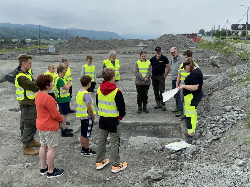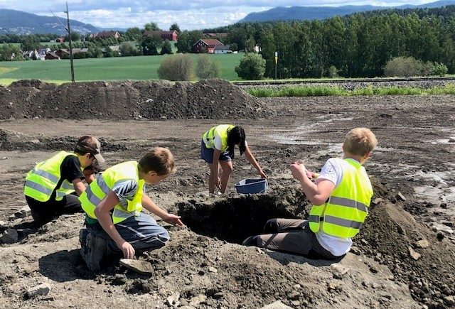 Profesjonelle arkeologer fikk hjelp av barn og unge tilknyttet Barnas Historielag, til dette arbeidet. En spennende jobb som bød på både regn og søle, men dette ble fort glemt når funn av potteskår, beinrester og gjenstander fra riktig gamle dager kom frem i dagens lys.