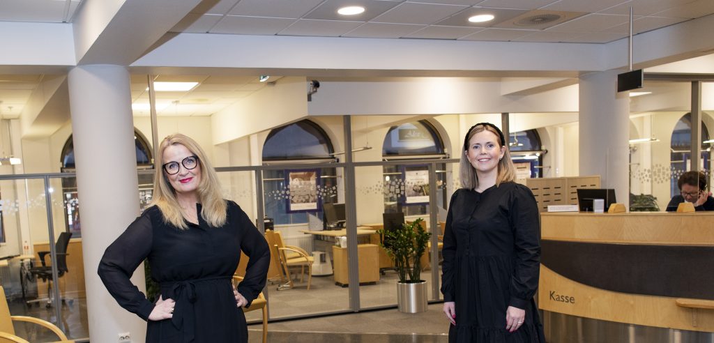 «Den personlige banken» er slagordet vårt, og det syns jeg vi lever opp til, sier Cathrine og Nathalie.