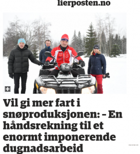 For løypemannskapet på Martinsløkka er ATV’en en uvurderlig hjelp med å frakte ut slanger, kanoner og annet utstyr til snøkanonanlegget. Denne raske og effektive måten å flytte snøkanoner gir de en permanent og effektiv ordning for snøproduksjon på et stort område. Dette betyr også færre folk i arbeid og mindre tung løft. Samtidig som vi var på befaring på Martinsløkka var også Gjermund Sørstad fra Lierposten på besøk. Les hans artikkel som stod på trykk i Lierposten.no
