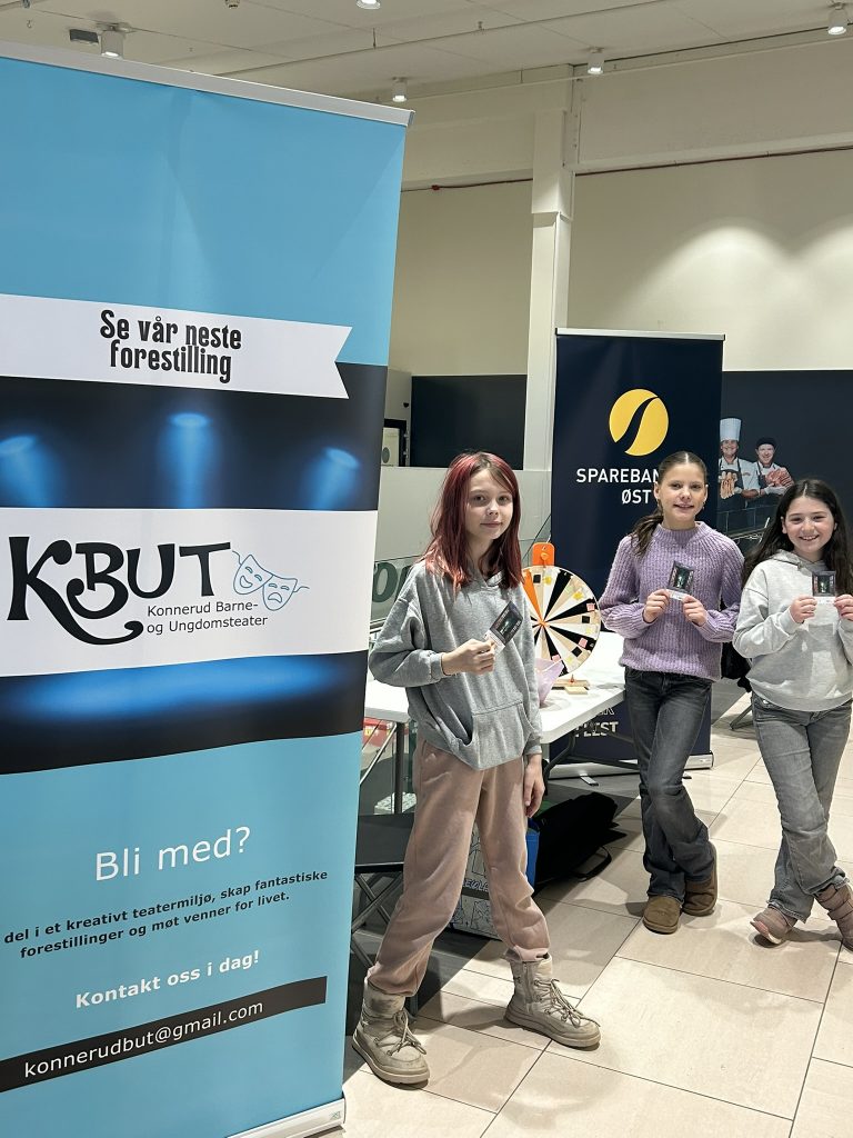 Det er plass til flere barn og unge i gruppen, så nå er de i ferd med å gjøre seg mer kjent for Konneruds befolkning. Foreldre og barn står på Konnerudsenteret for å reklamere for teateret, forestillingen og å vise hvor gøy det er å være med.