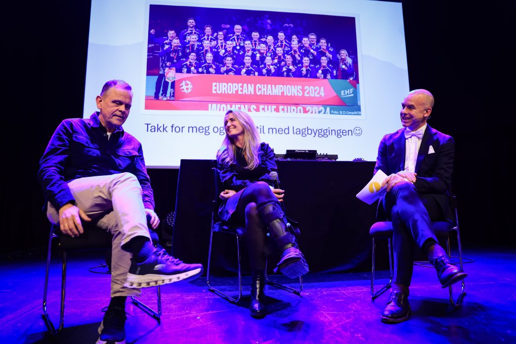 Sammen med henne møtte vi håndball-landslagets legendariske trener Thorir Hergeirsson, som inspirerte salen med sitt foredrag om kunsten å bygge et lag.