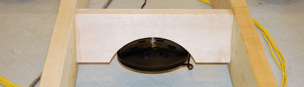 På bildet under ser man hvordan et vibrasjonsgulv bygges opp ved hjelp av spesielle høyttalere som omdanner lyd til vibrasjoner.