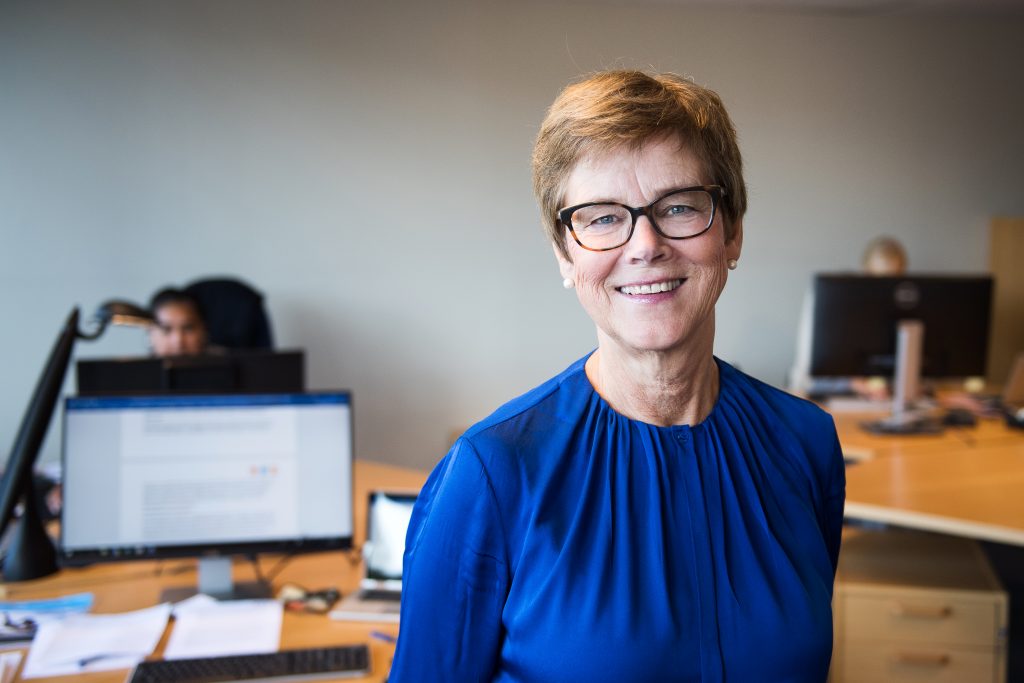 I kontorlokalene ved Bragernes Torg i Drammen legger prosjektrådmann for Nye Drammen, Elisabeth Enger, planene for den nye storkommunen. Med seg på laget har hun ni engasjerte medarbeidere i prosjektadministrasjonen.