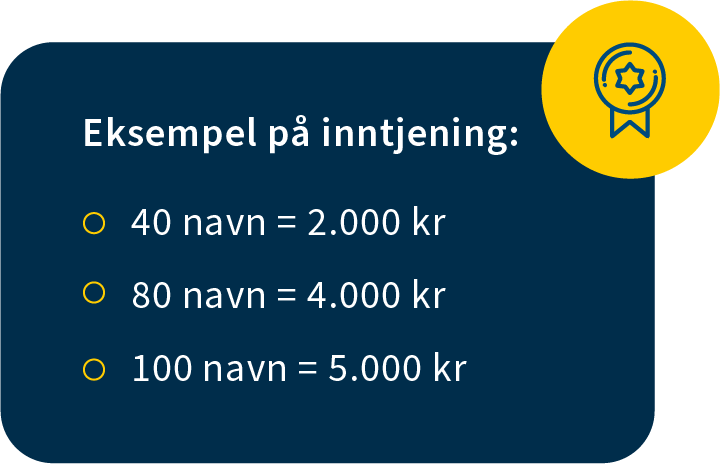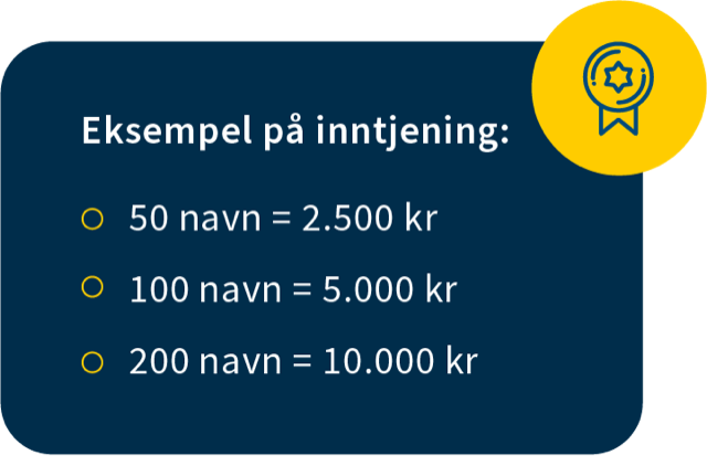 Nå har du som lagleder mulighet til å skaffe laget ditt litt ekstra i lagskassa på en veldig enkel måte. For hvert navn du tipser oss om – gir vi 50 kroner som går direkte til ditt lag.