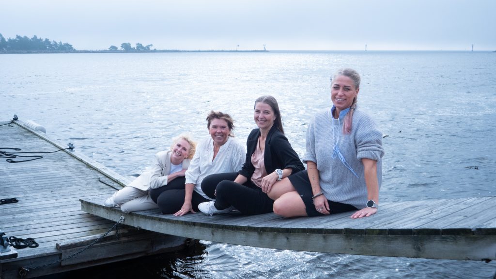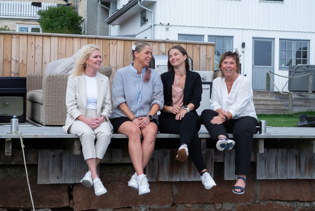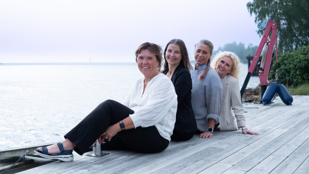 Med utsikt mot Svelvikstrømmen markerer fire dedikerte damer en milepæl. Sparebanken Øst i Svelvik feirer ti år med personlig rådgivning og nærhet til kundene.