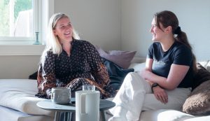 – Det å ha en personlig rådgiver, som Carina, har gjort det enklere for meg å komme inn på boligmarkedet. Jeg har hatt mulighet til å stille alle de «dumme» spørsmålene. Carina kan dette. Det kan ikke jeg. Jeg har tenkt at Carina ønsker meg det beste – og det er akkurat den følelsen jeg sitter igjen med. I mitt hode har Carina og jeg blitt bestevenner. Jeg har hatt en veldig positiv opplevelse, sier hun og smiler mot rådgiveren sin.