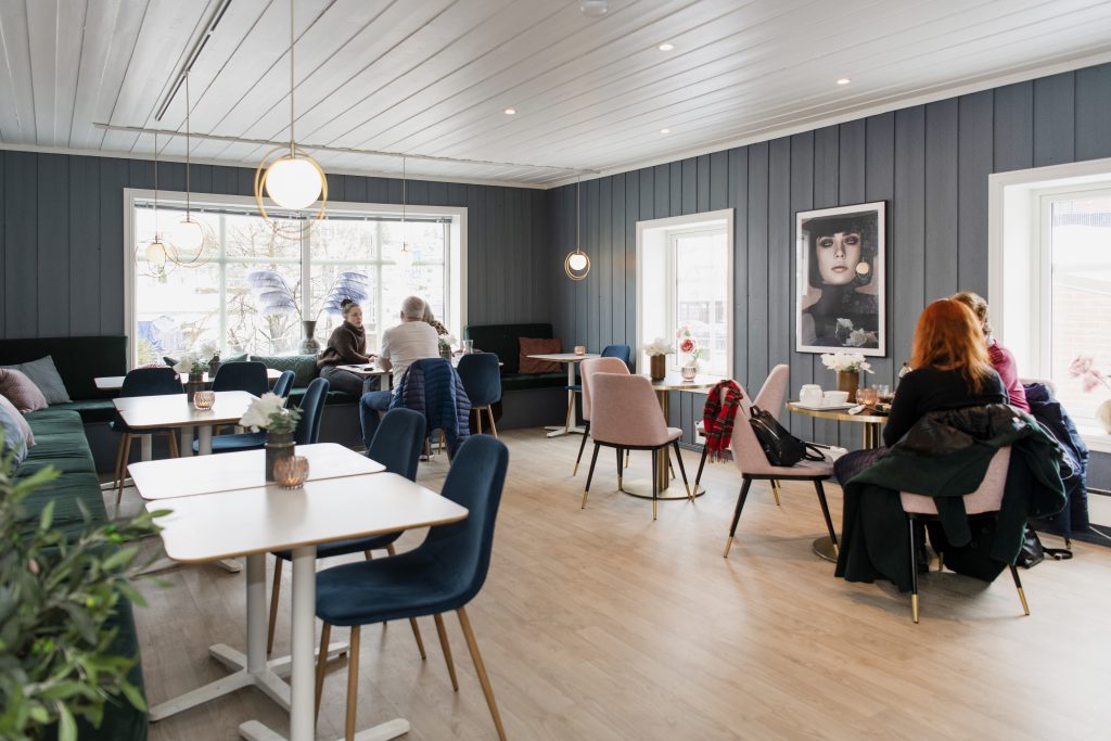 I de flotte lokalene midt i hjertet av Vestfossen blir vi møtt med god service og blide folk. Det dufter nytraktet kaffe og varm sjokolade – en god kombo på en ellers regntung dag.