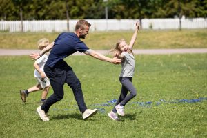 –Du ser jo barna bare lyser opp når de leker her ute. Det er veldig gøy å være med på. Å få frem frileiken og løkka igjen er viktig, sier Stengel der barna leker rundt han i solskinnet.