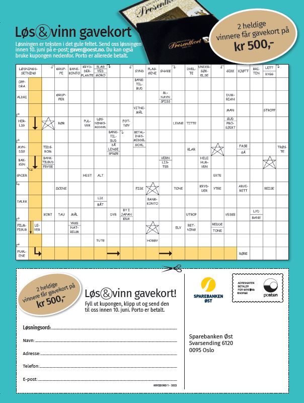 Har du ikke fått Informasjonsbladet Verdier, kan du se kryssordet og løse det her
